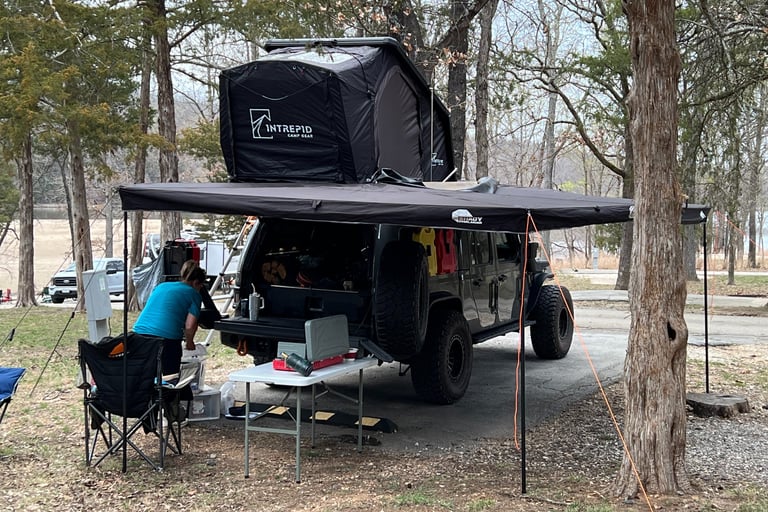 Kye and Lisa Duet are residents of Newton County, Arkansas. They moved here several years ago from Louisiana, after stumbling upon the beautiful Ozark Mountains while driving on a multi-state vacation. After many more vacations and falling in love with this area, the Duets decided to make the move to Jasper, Arkansas. They have been exploring hiking trails, floating down the Buffalo National River, chasing waterfalls, and 4-wheeling through the Ozarks ever since. Kye and Lisa discovered the overlanding community and have put together their own "rig" to begin exploring the wonders that the outdoors has to offer as overlanders. Lisa drives a 2021 Toyota 4-Runner and Kye drives a 2023 Jeep Gladiator.